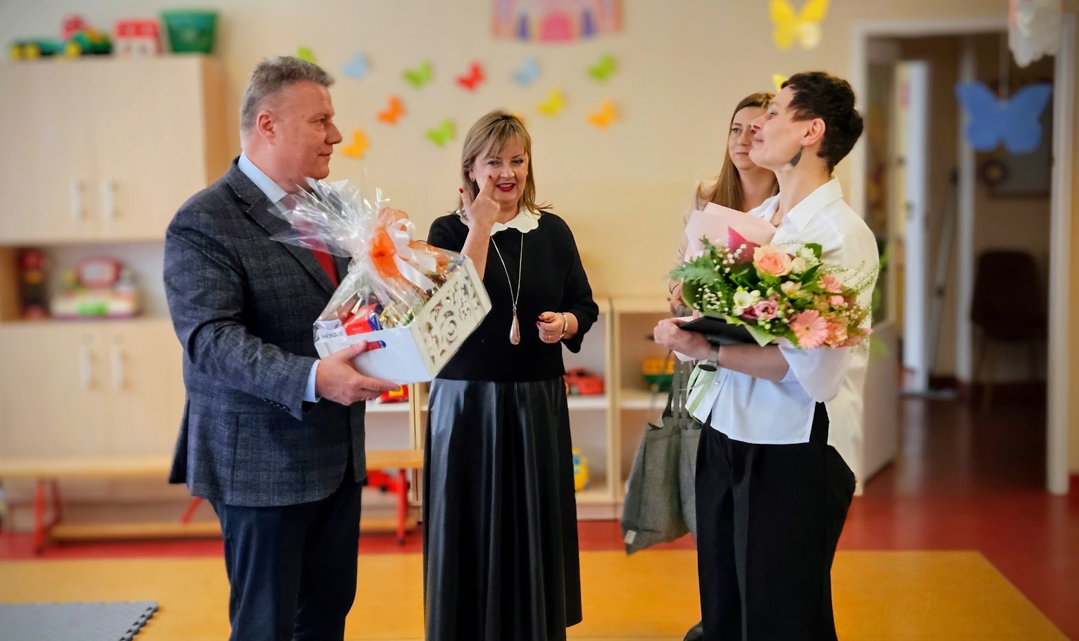 Po raz pierwszy obchodziliśmy Dzień Opiekuna Małego Dziecka – święto tych, którzy każdego dnia z czułością, cierpliwością i ogromnym sercem towarzyszą najmłodszym mieszkańcom w ich pierwszej przygodzie z przedszkolnym światem. Z tej okazji burmistrz Dariusz Kucharski odwiedził dzieci i ich opiekunów w żłobku miejskim. Były życzenia, upominki, mnóstwo radości, a także… wzruszenie. Bo dzisiejsza wizyta miała wyjątkowo sentymentalny wymiar.
