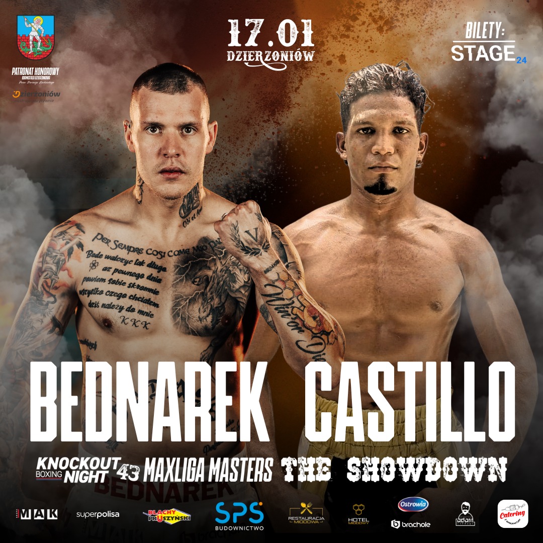 Gala KBN43: MAXLIGA MASTERS – THE SHOWDOWN zapowiada się historycznie. W walce wieczoru fenomenalny dzierżoniowianin - niepokonany dotąd Kamil Bednarek (16-0-0, 9 KO) stanie naprzeciwko twardego i doświadczonego rywala z Kolumbii, Evandera Castilla (20-4, 18 KO). Ich pojedynek na dystansie 10 rund to główna atrakcja wieczoru, która obfituje w emocje.