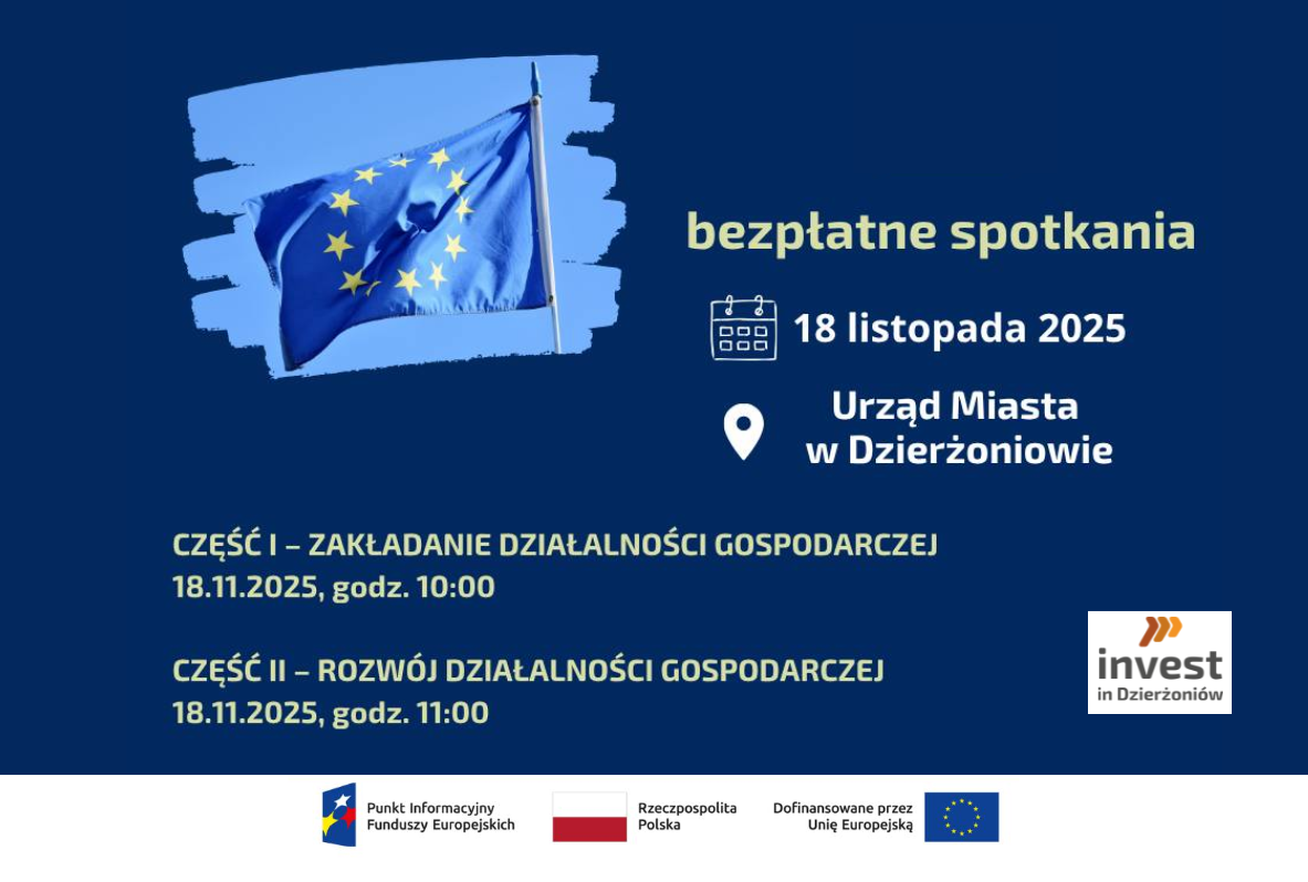 To doskonała okazja, by zdobyć praktyczną wiedzę o funduszach europejskich, dotacjach, pożyczkach i możliwościach rozwoju, jakie oferuje system wsparcia na Dolnym Śląsku. Przyjdź 18 listopada do Urzędu Miasta w Dzierżoniowie. Spotkanie odbędzie się w sali nr 14 (I piętro). Poprowadzi je Urszula Witkowska-Śliwa z Głównego Punktu Informacyjnego Funduszy Europejskich we Wrocławiu.