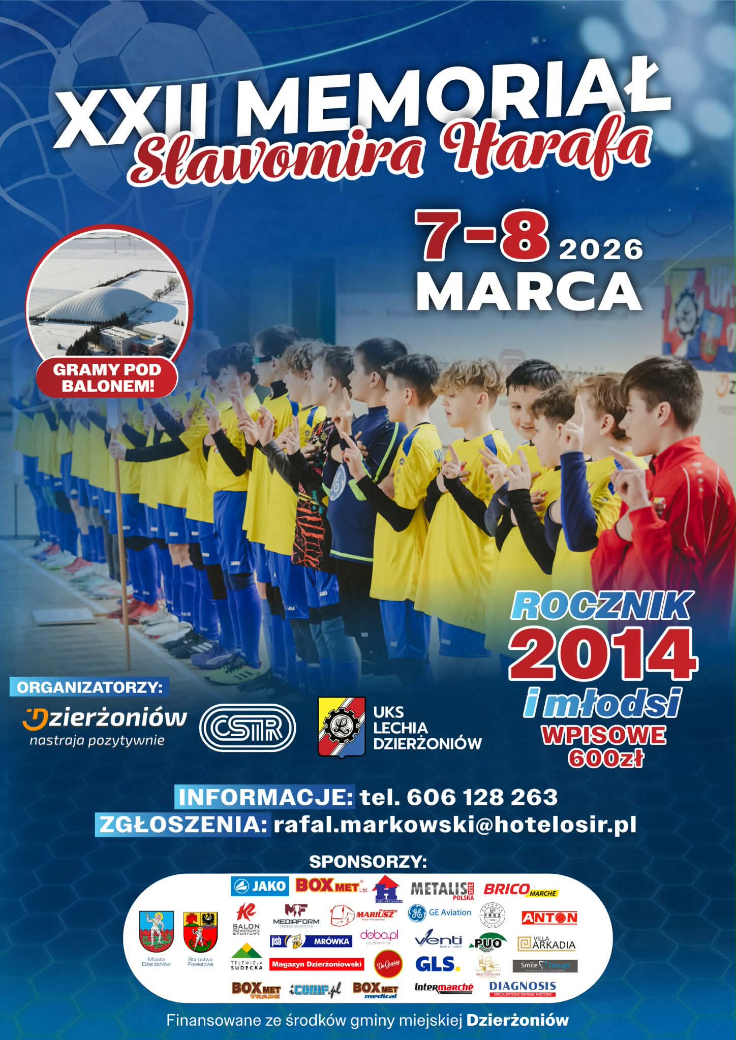 W pierwszy weekend marca już po raz dwudziesty drugi upamiętnimy osobę Sławka Harafa – jednego z najlepszych zawodników klubu Lechii Dzierżoniów. Na XXII MEMORIAŁ Sławomira Harafa zapraszają burmistrz Dzierżoniowa, OSiR oraz UKS Lechia Dzierżoniów.