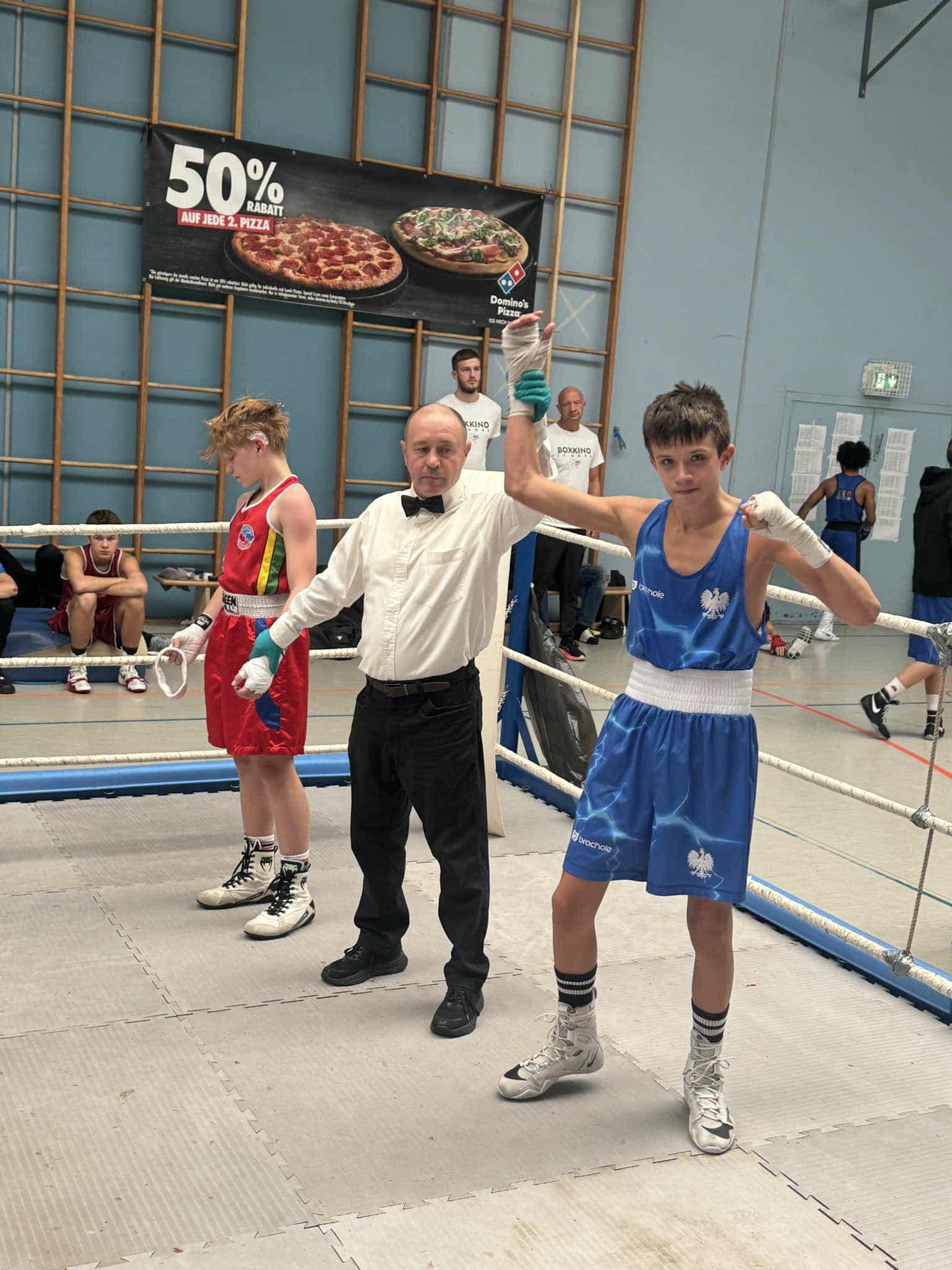 Wygrał trzy walki na międzynarodowym turnieju w niemieckim Koblenz, gdzie startowało 300 zawodników z 16 państw. Młody zawodnik klubu Boks Ciszewski pokonał zawodników z Litwy, Niemiec i Estonii.