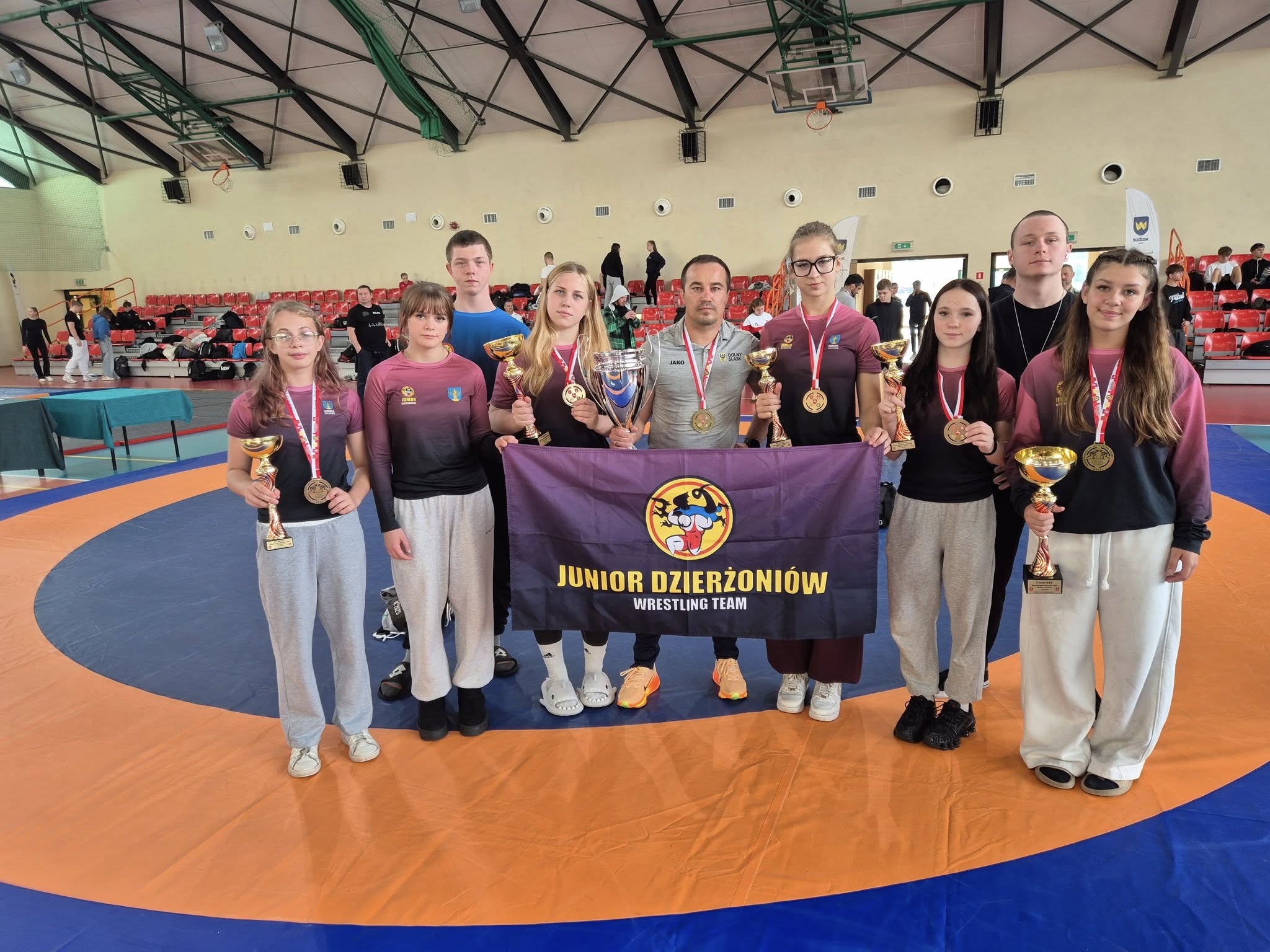 W miniony weekend w Kraśniku odbyły się Międzynarodowe Mistrzostwa Polski Kadetów i Kadetek w zapasach w stylu wolnym oraz kobiet. W zmaganiach rywalizowało 275 uczestników z 10 państw. W zawodach MULKS Junior Dzierżoniów reprezentowały – Milena Błażkiewicz, Oliwia Międła, Lena Błażkiewicz, Weronika Radzińska, Nadia Kurcab oraz Emila Wyka. Nasze zawodniczki spisały się znakomicie – Nadia Kurcab oraz Emilia Wyka awansowały do finału o złoty medal w kat 65kg. Tego dnia lepsza okazała się bardziej doświadczona Nadia Kurcab. To na jej szyi zawisł złoty medal. Srebro przypadło Emilii. Brązowe krążki po wyczerpujących walkach wywalczyły Milena Błażkiewicz, Oliwia Międła oraz Weronika Radzińska. Dzięki świetnej postawie indywidualnej klub JUNIOR Dzierżoniów uplasował się na II pozycji w kraju.