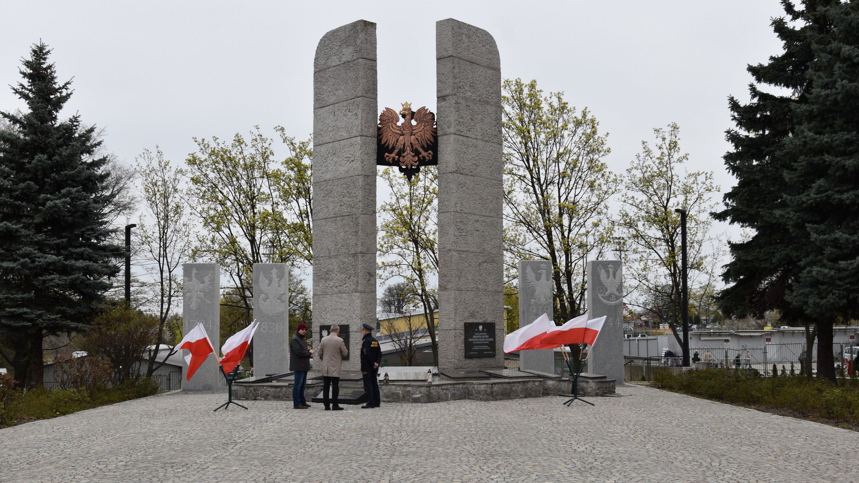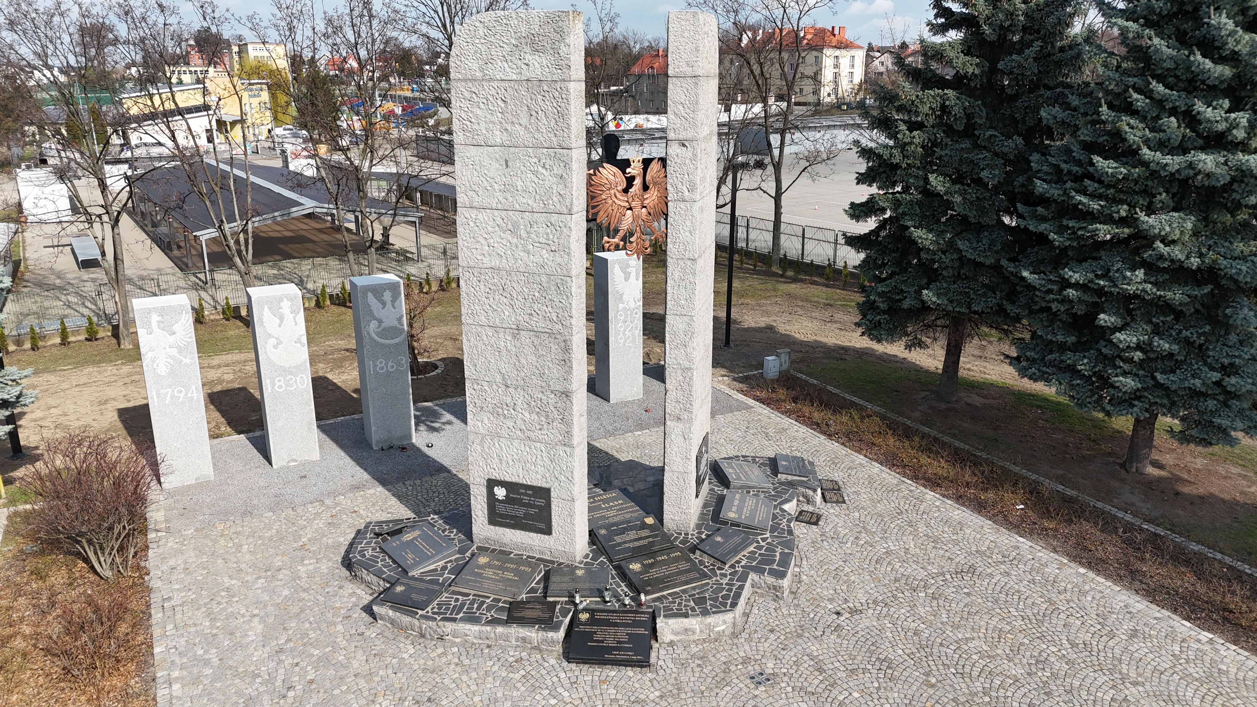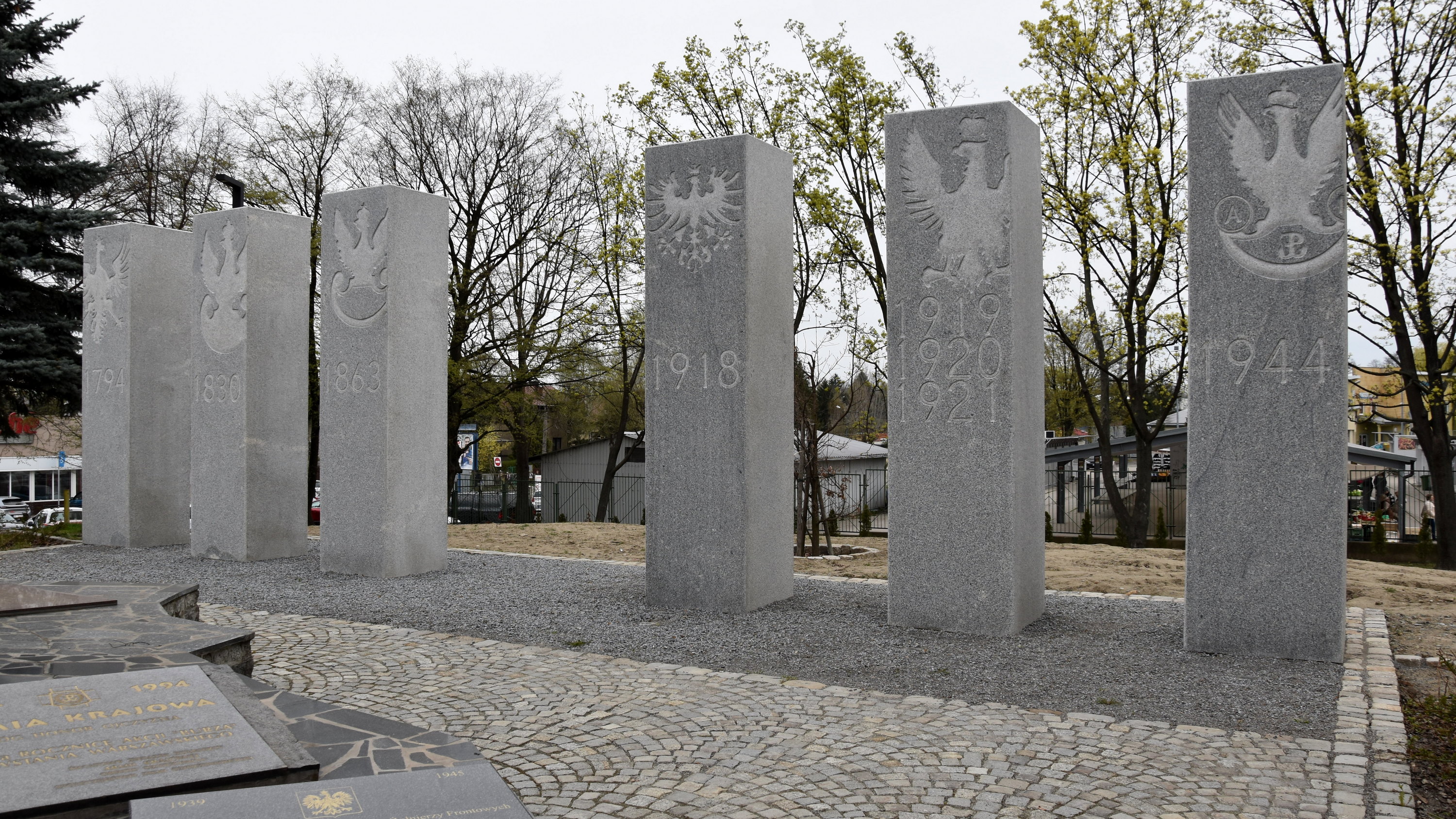 Skwer Solidarności - nowe filary przy Pomniku Pamięci Losów Ojczyzny
