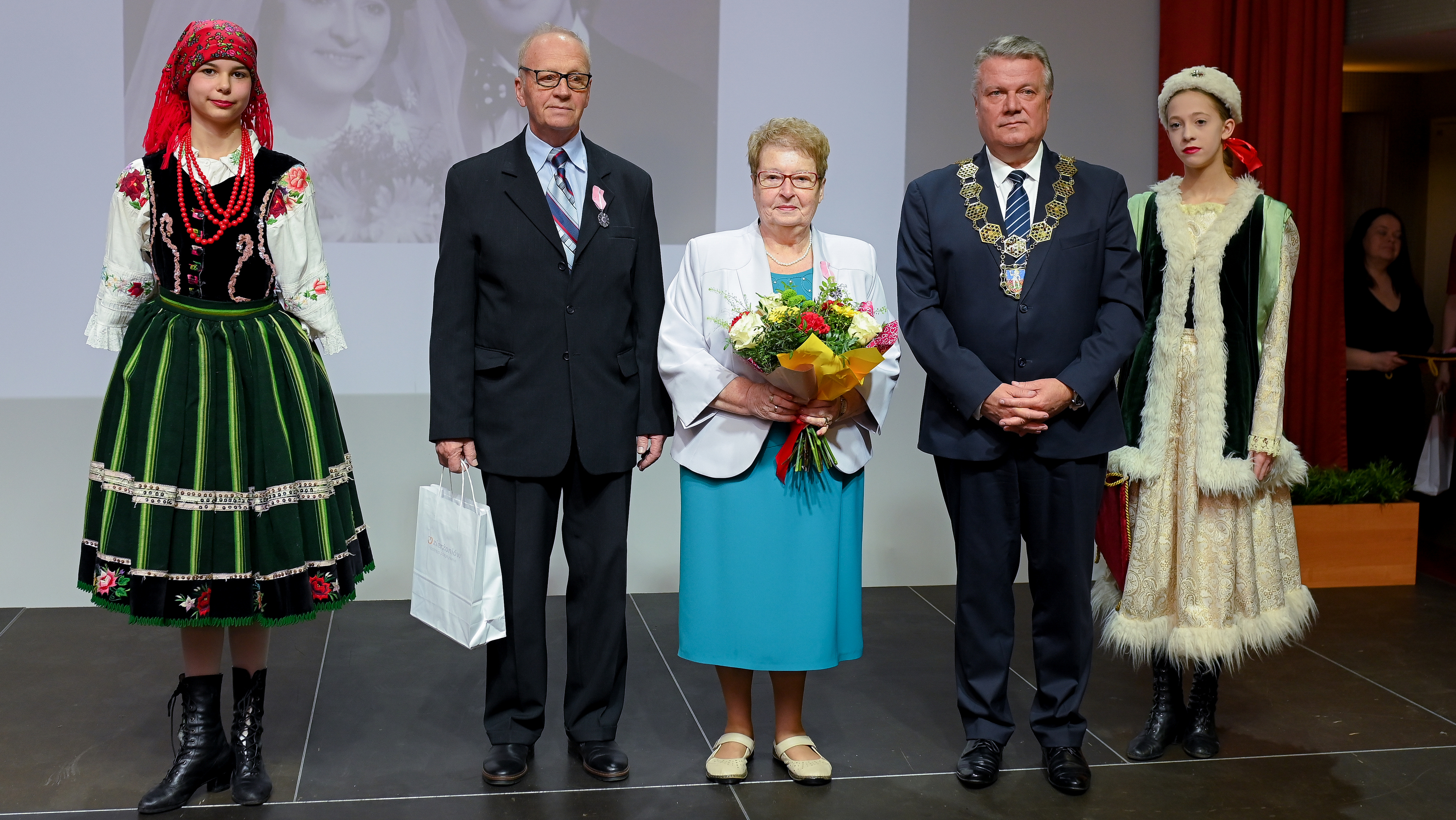 Uroczystość miała niezwykle podniosły, a zarazem rodzinny charakter. W sali reprezentacyjnej ratusza zasiedli jubilaci, którzy mimo upływu lat wciąż z dumą i czułością spoglądali na swoich drugich połów. Większość z nich swój związek małżeński zawarła w latach 1974–1975, a ich wspólna droga to świadectwo wierności, wzajemnego szacunku i codziennego wsparcia.