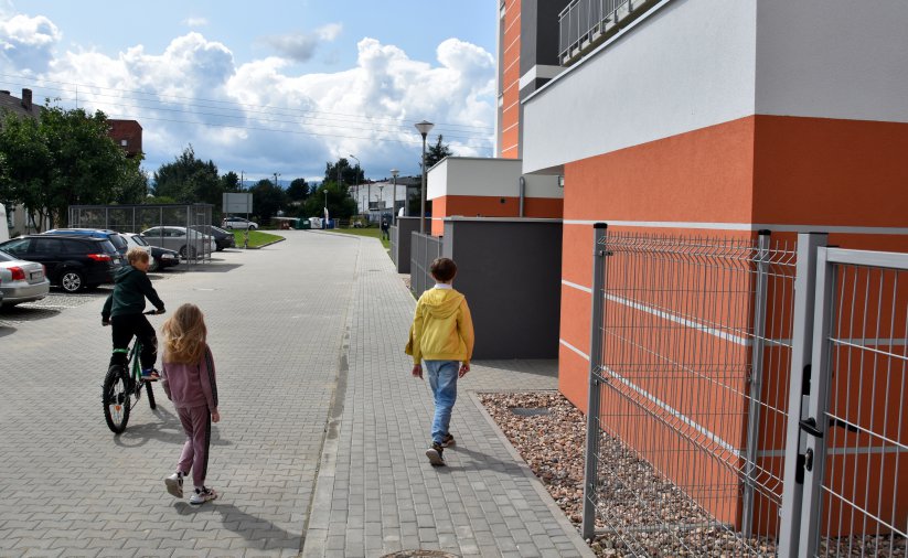 Dwa nowoczesne budynki komunalne mają już swoich lokatorów. Pomiędzy blokami jest łącznik z miejscem na punkt usługowy.
