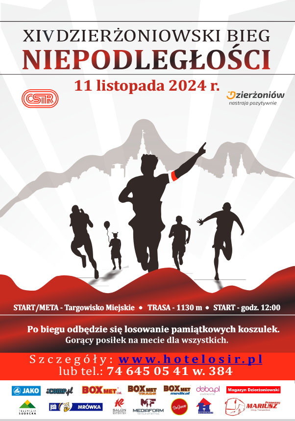 Również w tym roku mieszkańcy będą mogli uczcić Narodowe Święto Niepodległości biorąc udział w wydarzeniu, na które zaprasza burmistrz Dzierżoniowa i ośrodek sportu. Zapraszamy do udziału wszystkich chętnych bez względu na wiek i kondycję.
